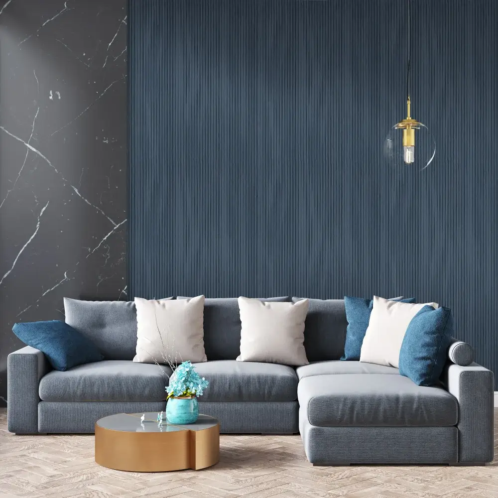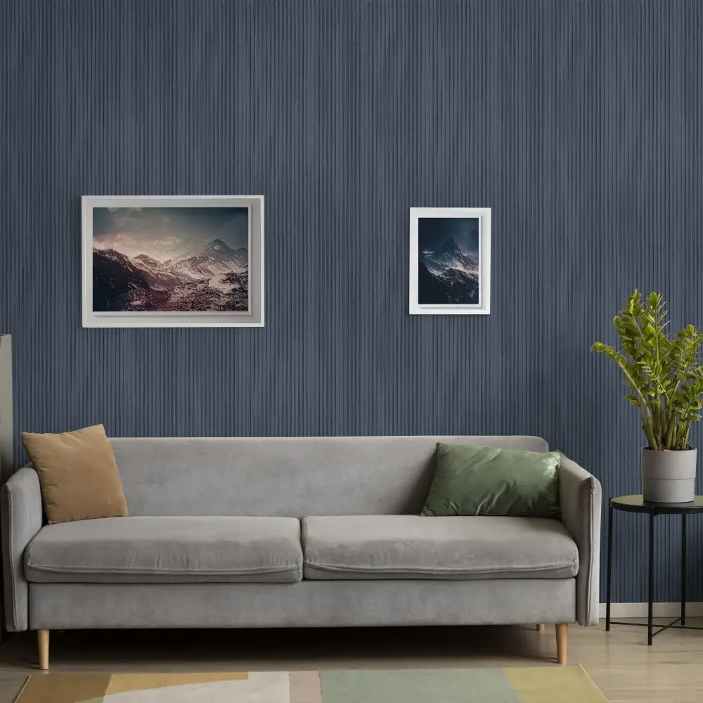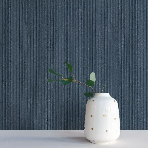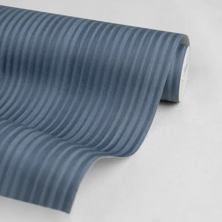خطوط صاف و رنگ سرمهای این کاغذ دیواری با مبلمان مدرن، فلز، شیشه و بتن ترکیب میشود و جلوهای حرفهای و جذاب ایجاد میکند.